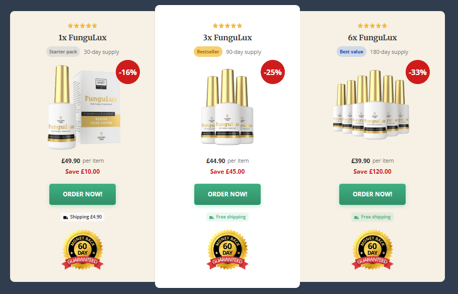 FunguLux is typically available in multiple package options to suit different needs. Based on common offers: